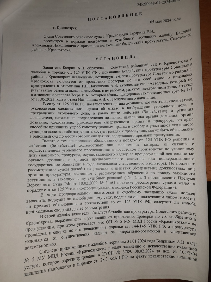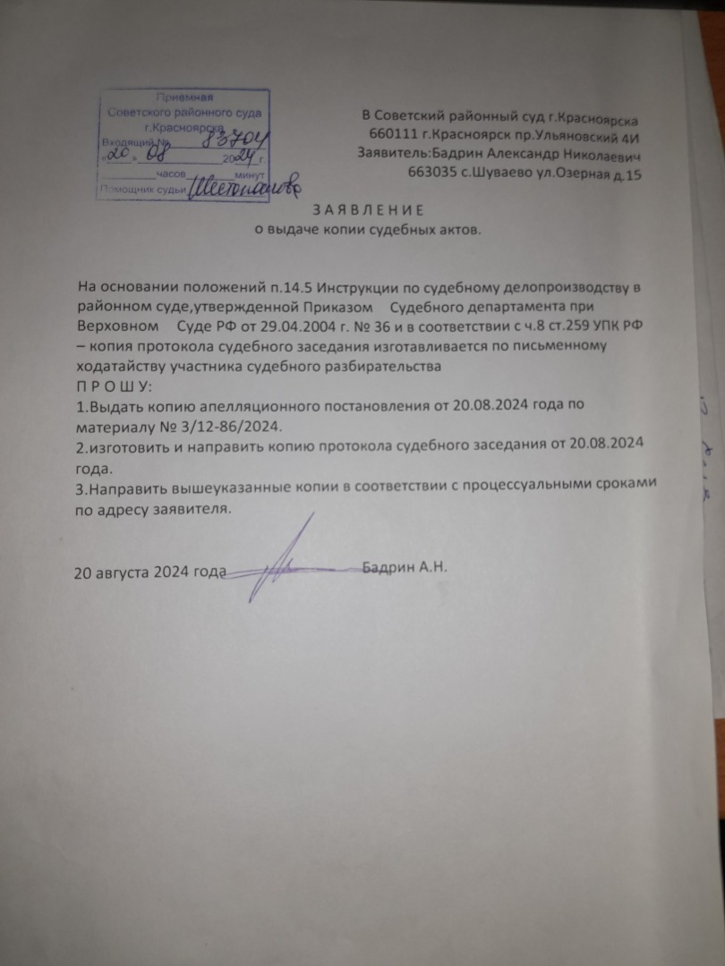 Добрый день.Вот процессуальные документы материала № 3/12-86/2024