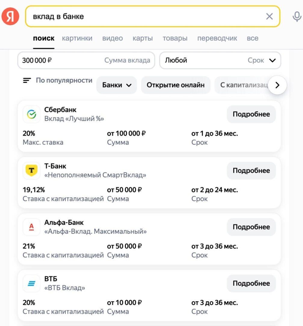 "Помимо ВТБ и Сбербанка, которые недавно подняли ключевые ставки, другие крупные игроки, такие как Альфа-Банк, Совкомбанк и МКБ, ещё раньше стали предлагать ставки до 21% годовых, что наглядно видно в поиске Яндекса."