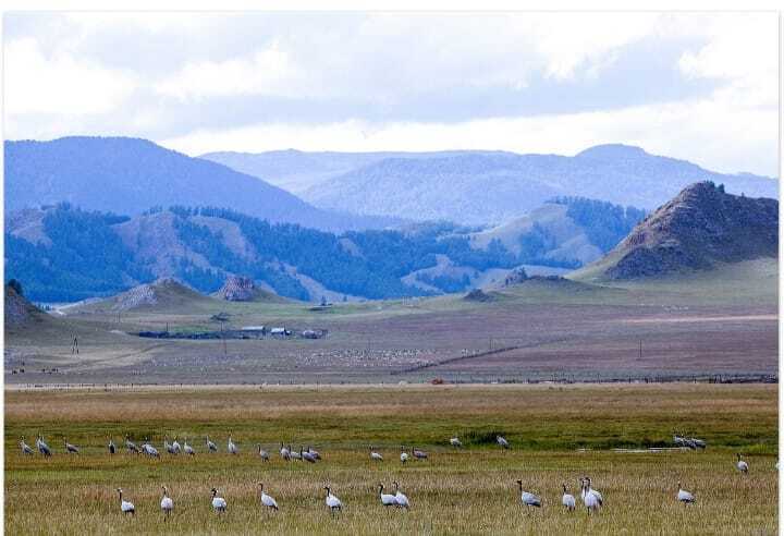 На фото Усть-Канская степь, в Республике Алтай,где 1000 журавлей сделали посадку на отдых перед долгим перелётом на юг.