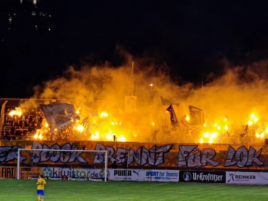 Трибуна Локомотива (Лейпциг) в начале второго тайма вчерашнего матча с Цвиккау. Это четвёртый по силе немецкий дивизион.