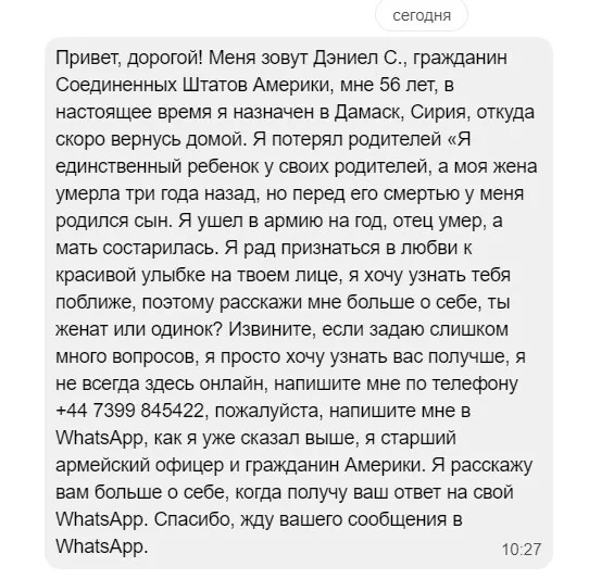 Если к вам в соцсетях обращаются Майклы, Джоны, Дэниелы и прочая шушара под видом бравых американских офицеров, знайте: это обычная мошенническая схема.