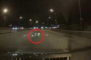 "Инцидент произошел поздно вечером 14 сентября. На кадрах видно, как она вываливается на дорогу и на четвереньках переползает две полосы на обочину, а автомобиль в это время врезается в леера."