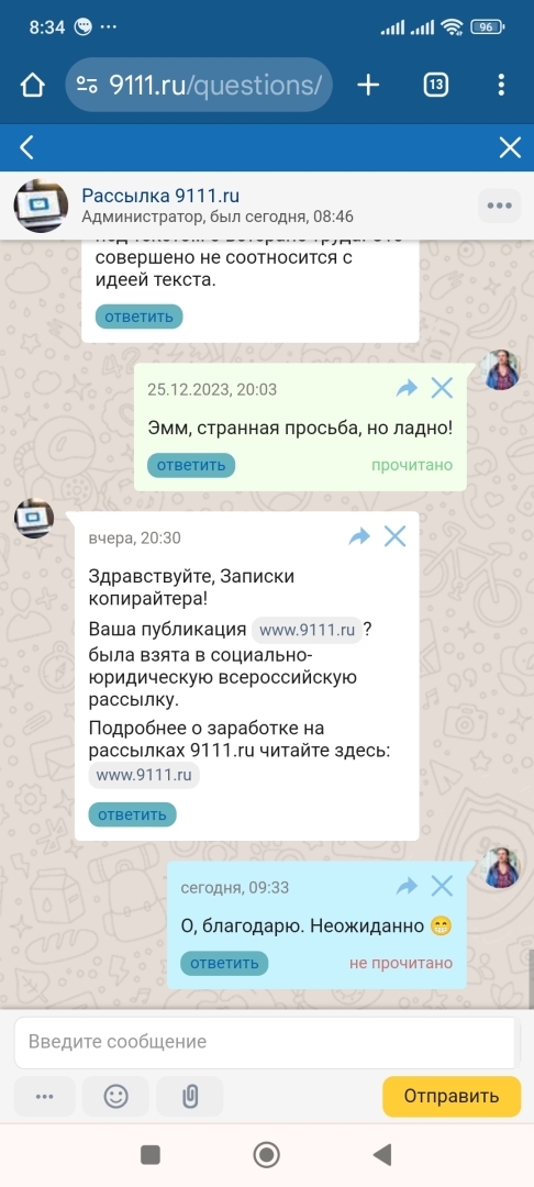 Всем приветики. Решила немного поработать. Захожу в личку. А там письмо от Администрации...