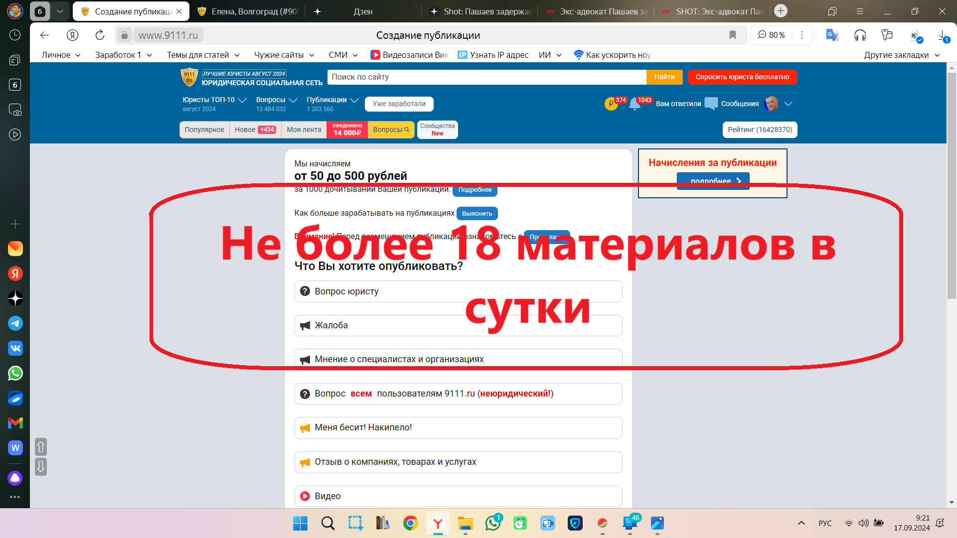 Так что, дорогие дамы и господа, имейте ввиду, что количество размещаемых материалов в течении суток не должно превышать восемнадцати.