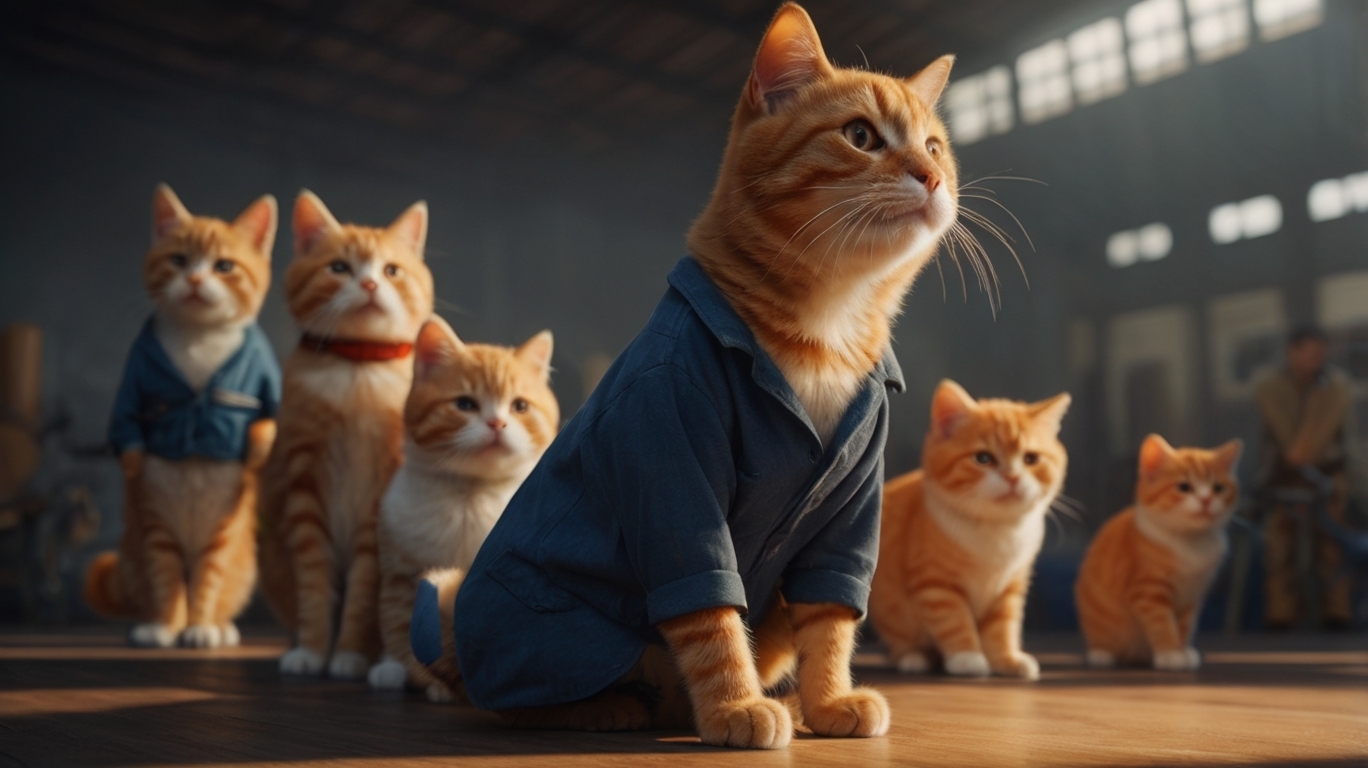 В забытых уголках Уискерхоллоу, где тени танцевали под светом угасающей луны, жил Макс — рыжий гуманоидный кот, чьё округлое тело обмякло на брусчатке улиц, словно упавший осенний лист. Его шерсть, когда-то яркая и огненная, теперь была спутанной и неухоженной, отражая презрение, которое шепталось за спиной среди его сородичей. Они пробегали мимо него с насмешливым смехом, высоко подняв хвосты, словно отгоняя его присутствие. "Ленивый Макс", дразнили они. "Единственное, за чем он гоняется — это его собственный хвост!"