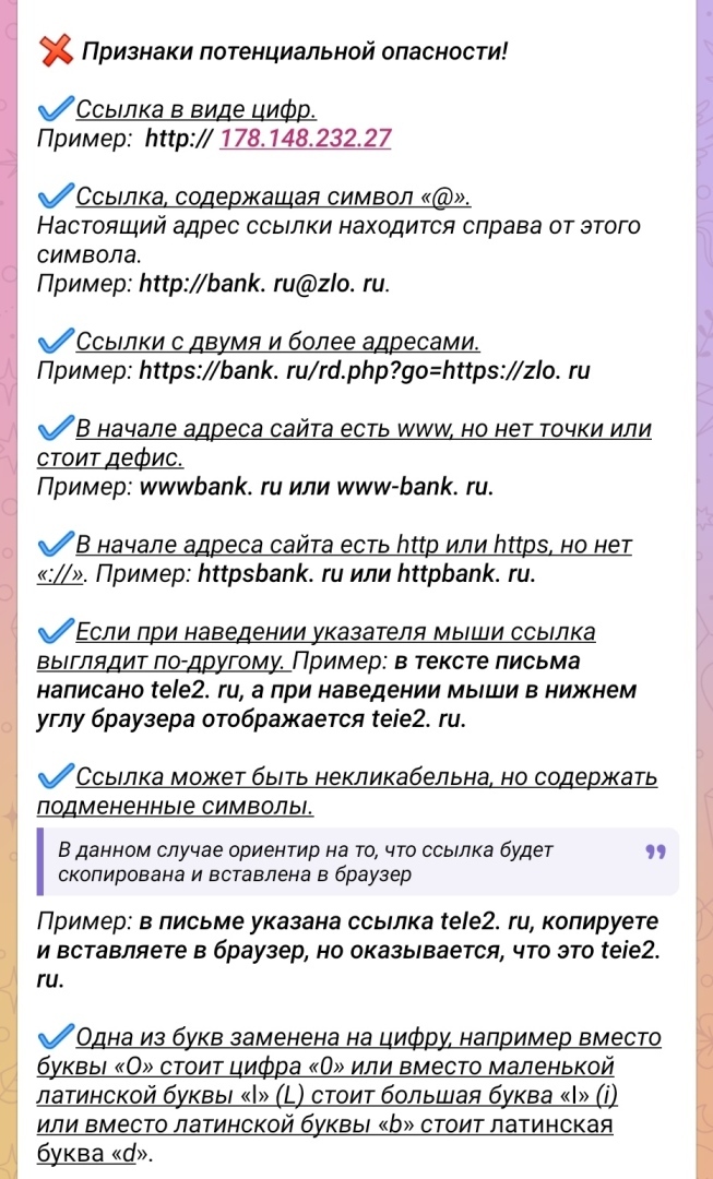 Часто встречающиеся ссылки подделки: в тексте ссылки только цифры либо в тексте подмена букв, вы читаете одно, а если перейти, то текст ссылки не совпадет с прочитанным, смотрите скриншот, будьте бдительны, не будем отмахиваться на авось.