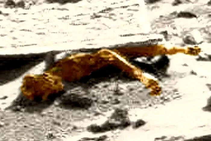 Кстати, практически такая же находка, то есть тело гуманоидного марсианина, уже попадала в поле зрения марсианских археологов - сторонников того, что на Красной планете когда-то существовала высокоразвитая цивилизация, которая, вполне возможно, родила нашу нынешнюю. И не только родила, но и по сей день следит за землянами, контактирует с ними (с отдельными структурами или представителями).