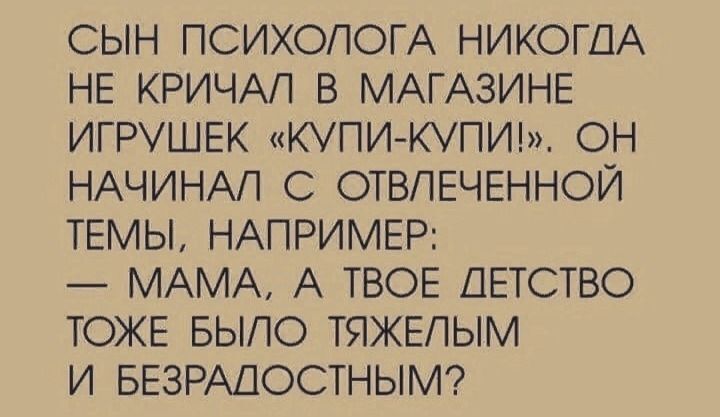 Дети психологов в магазине Игрушек изначально ведут себя иначе, нежели другие дети)