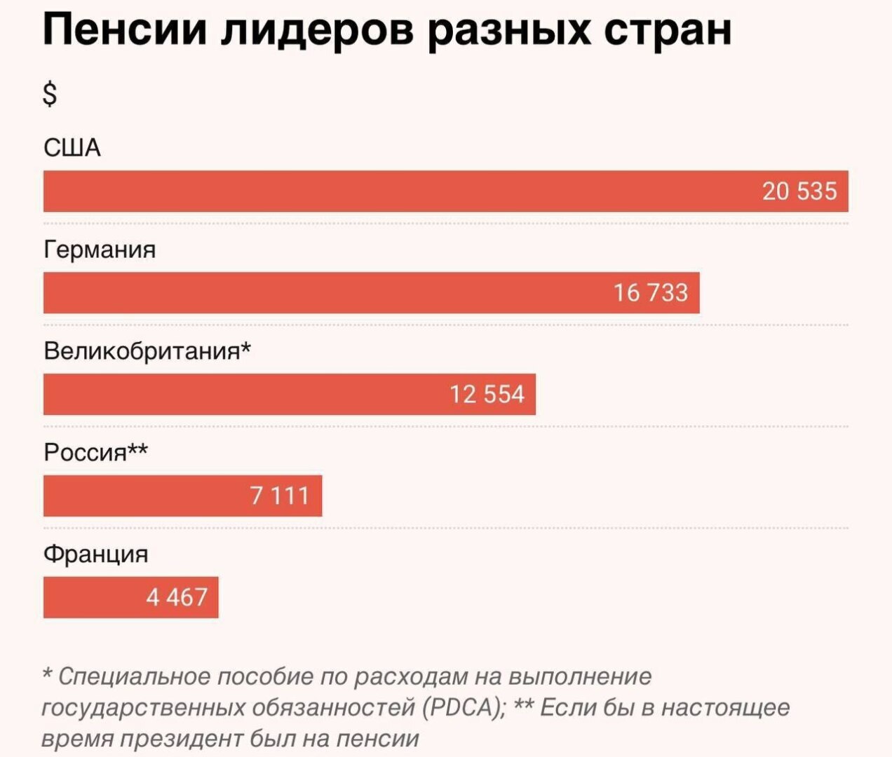Зарплата Путина и будущая пенсия президента России и др. стран.
