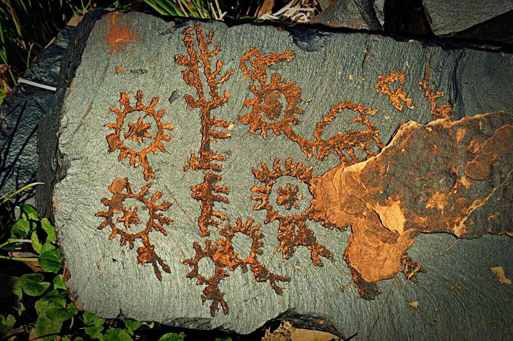 У поселенцев бронзового века была традиция писать петроглифы, изображающие священные изображения. Например, легко заметить антропоморфные фигуры с сияющими головами, напоминающие классический стиль многих других изображений божественных существ на древних памятниках наскального искусства мира.