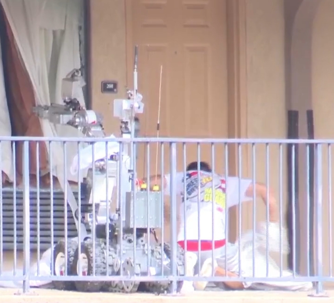 Тогда офицеры привлекли робота, с помощью которого был распылён слезоточивый газ в номере мужчины.