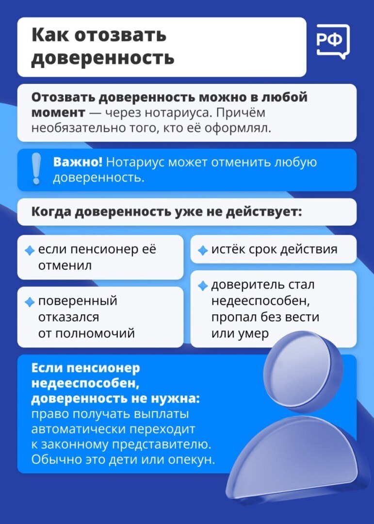 Также из личного плохого опыта, потому что мы не оформили доверенность на получение пенсии больной матери инсультницы, в начальной стадии ее ударов (уже нет в живых). Процедуру по признанию ее недееспособной, чтобы получать за нее выплаты, делали в крайне критическом ее состоянии. И сейчас я советую всем сразу в случае инсульта, тем более нескольких, оформлять доверенность на получение пенсии.