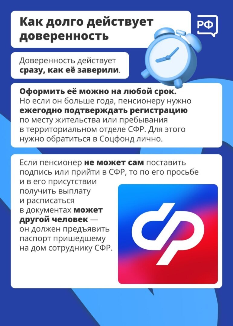 ~Выплачивая пенсию на дому часто приходилось давать совет по оформлению доверенности - указывать максимальный срок, несколько получателей одновременно, и возможность получать пенсию во всех уполномоченных на выплату организациях. Конечно все индивидуально. А выплата пенсии без доверенности постороннему лицу незаконна, также как и выплата без ежемесячной проверки наличия паспорта.