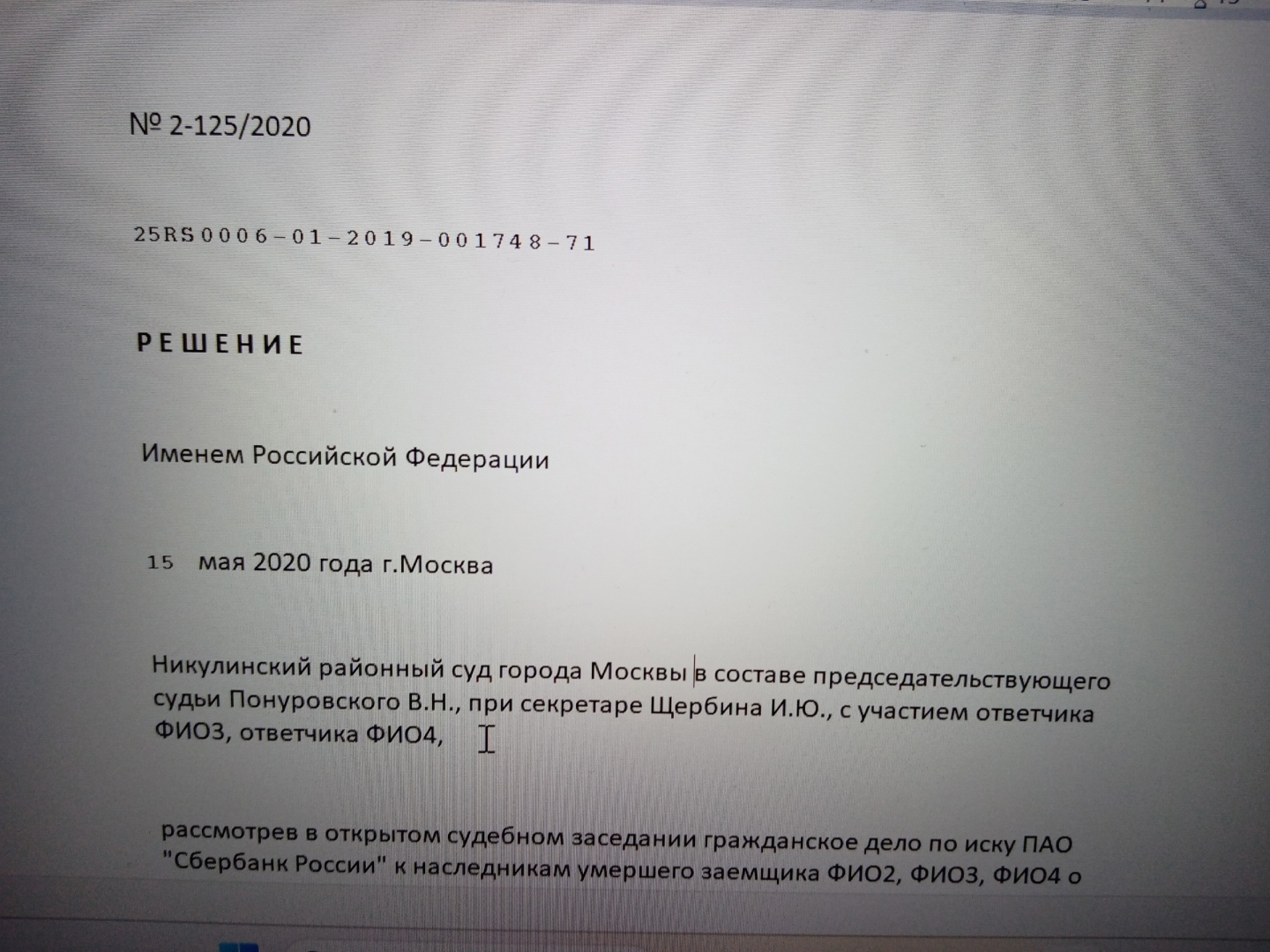 Никулинский районный суд г. Москвы, материалы дела № 2-125/2020