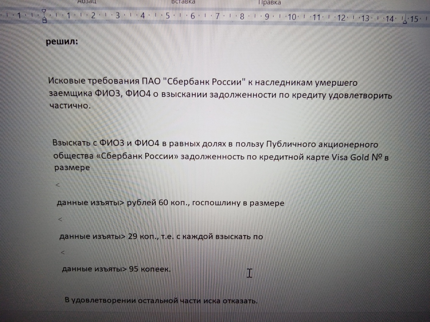 Родители умершего ответили, что не принимали наследство, поскольку у сына не было никакого имущества, а значит, по их мнению, они не обязаны ничего платить.