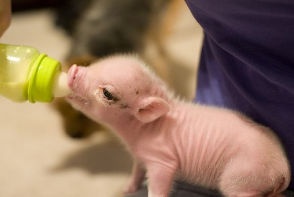 Ну так вот, переложили мы их в ящик и занесли в дом, поближе к печке, чтобы тепло им было. Дальше начали поросят выхаживать. Поила я их козьим молоком (коровы у нас нет, держим коз) из детской бутылочки. Первую ночь не спали совсем, каждый час их поили.