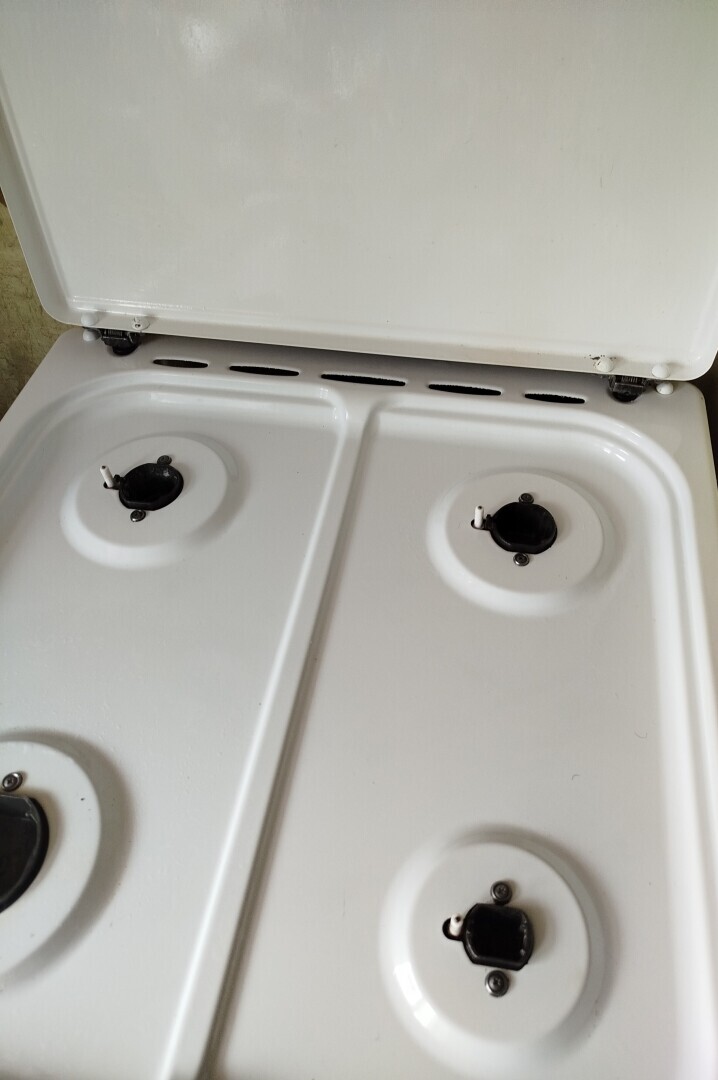 Большая конфорка всегда самая грязная. И долго была желтой. Плита дешёвая, стоила всего 11 или 13000 четыре года назад. А на большой конфорке чаще всего готовим. После этого средства, она посветлела, и очистилась от древних пятен. С которыми уже и Азелит не справляется.