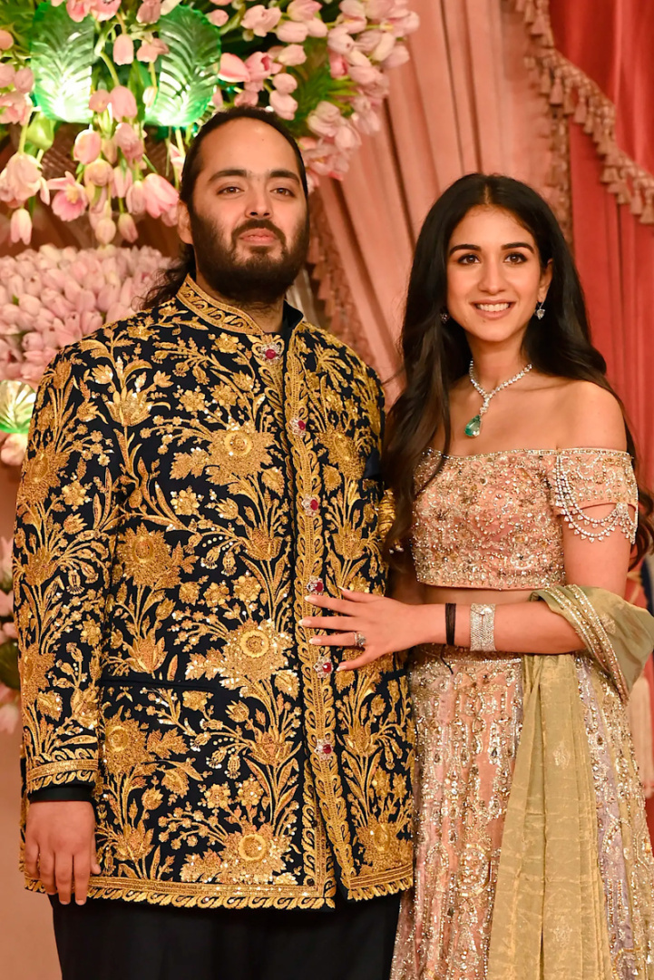 Радхика от родителей Ананта получила в подарок брошь Cartier стоимостью около 260 000 долларов и чокер с жемчугом и бриллиантами стоимостью 1,3 млн. долларов.