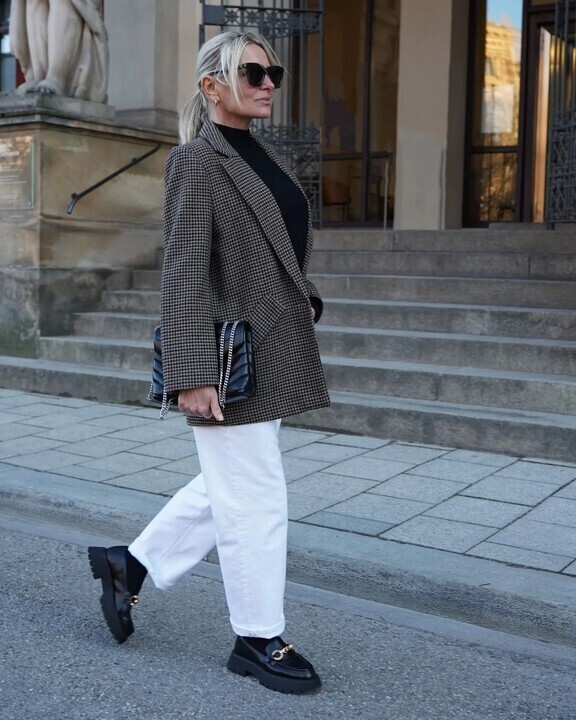 Избегайте мешковатой одежды: она визуально расширяет фигуру и прибавляет лет. Выбирайте умеренный объём, чтобы обеспечить комфорт и возможность надеть дополнительный слой в холодную погоду.