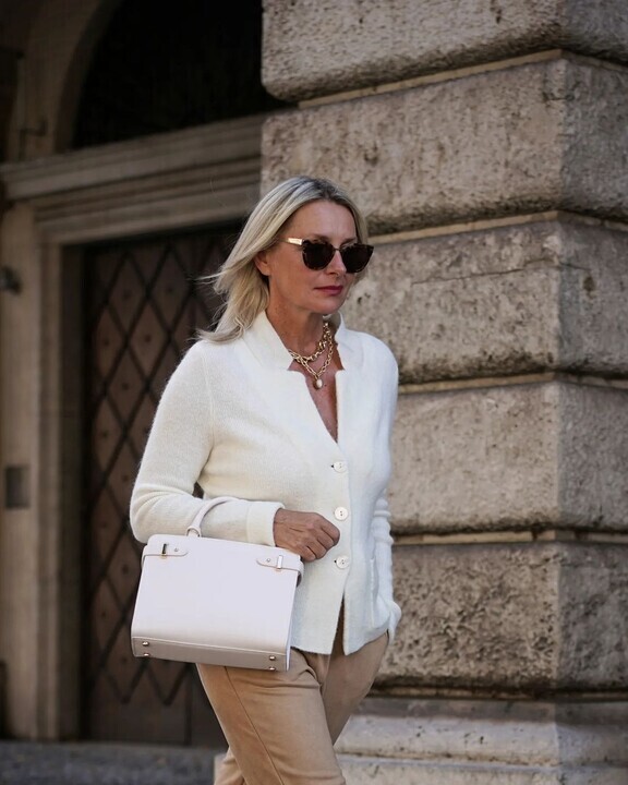 Избегайте темных оттенков: черный, темно-синий и коричневый могут визуально прибавить возраста. Если это для вас важно, замените их на более светлые и теплые тона, такие как бежевый, кремовый, серый, а также нежные пастельные оттенки розового и сиреневого. Эти цвета освежат образ и придадут ему лёгкости.