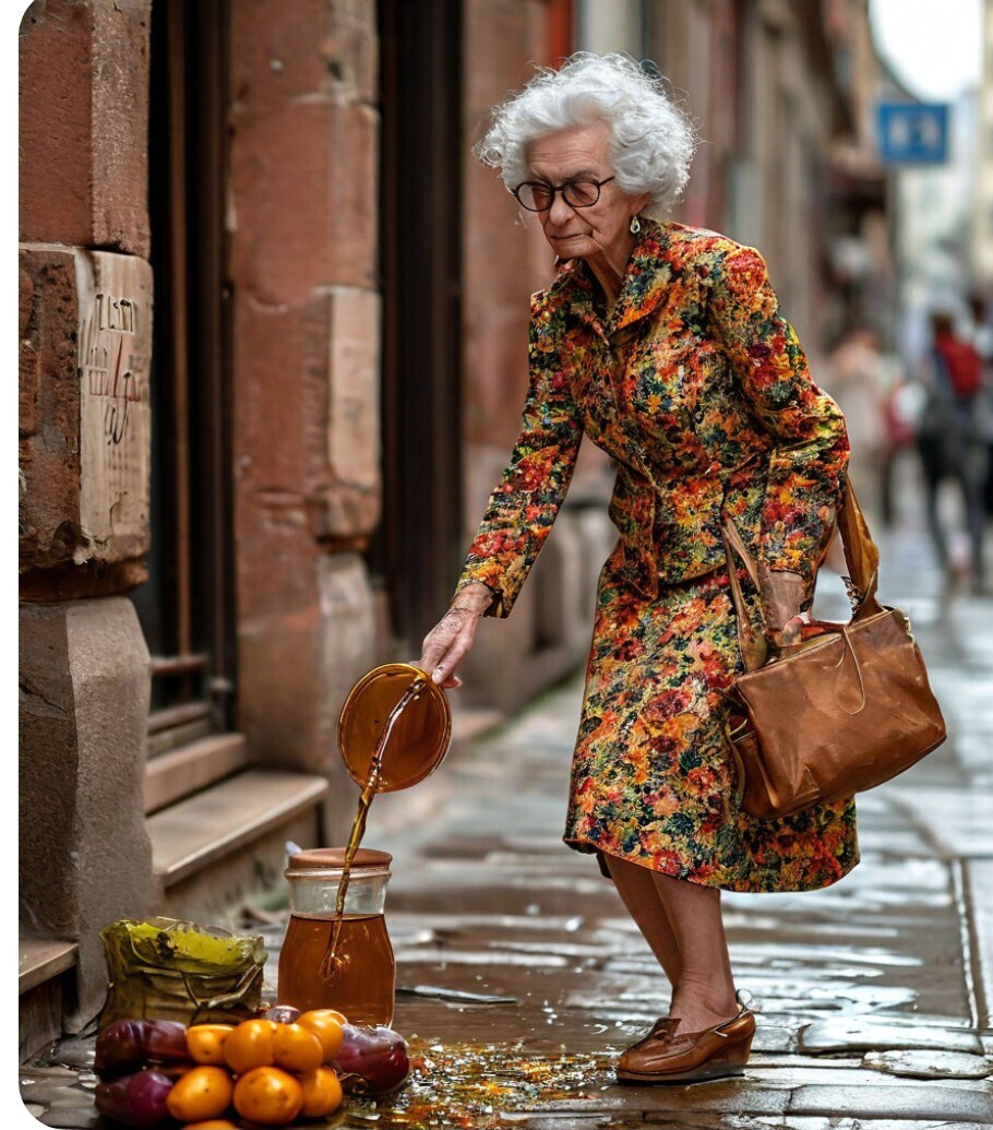 Она его уже разлила, теперь только последствия того, как масло варили, продавали, разливали и наконец идет трамвай......