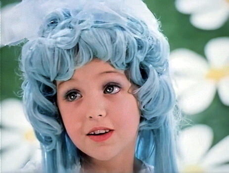 Удивительная Мальвина — девочка с голубыми волосами, которую ассистент режиссера нашла в поезде. Она ехала вместе с мамой и так увлеченно играла с куклами, что получила приглашение прийти на пробы.