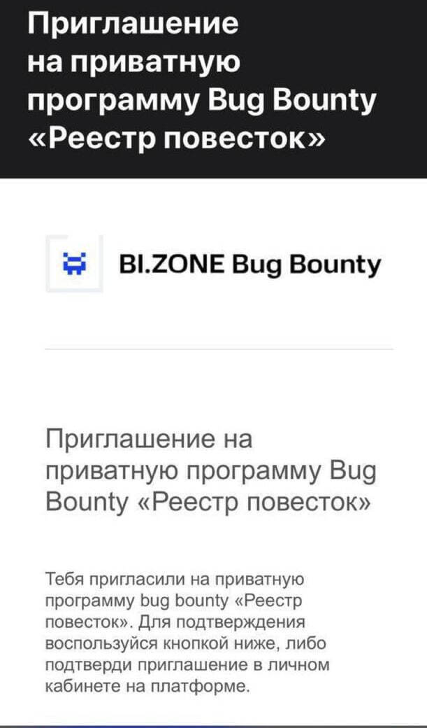 Белые хакеры из России начали получать приглашения найти уязвимости в электронном реестре воинского учёта. Предложения поступают в рамках приватной программы Bug Bounty. В рамках этой программы исследователям предлагается выплаты до одного миллиона рублей в случае, если они найдут уязвимые места в новой системе.