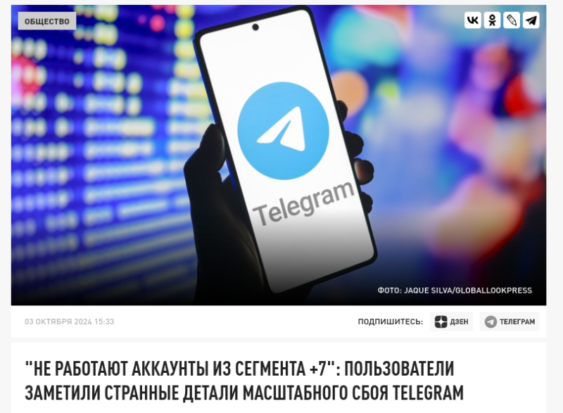 Что касается слухов о тестировании "Занавеса", Кусков также усомнился в этой версии, задав вопрос: почему сбой коснулся только Telegram?