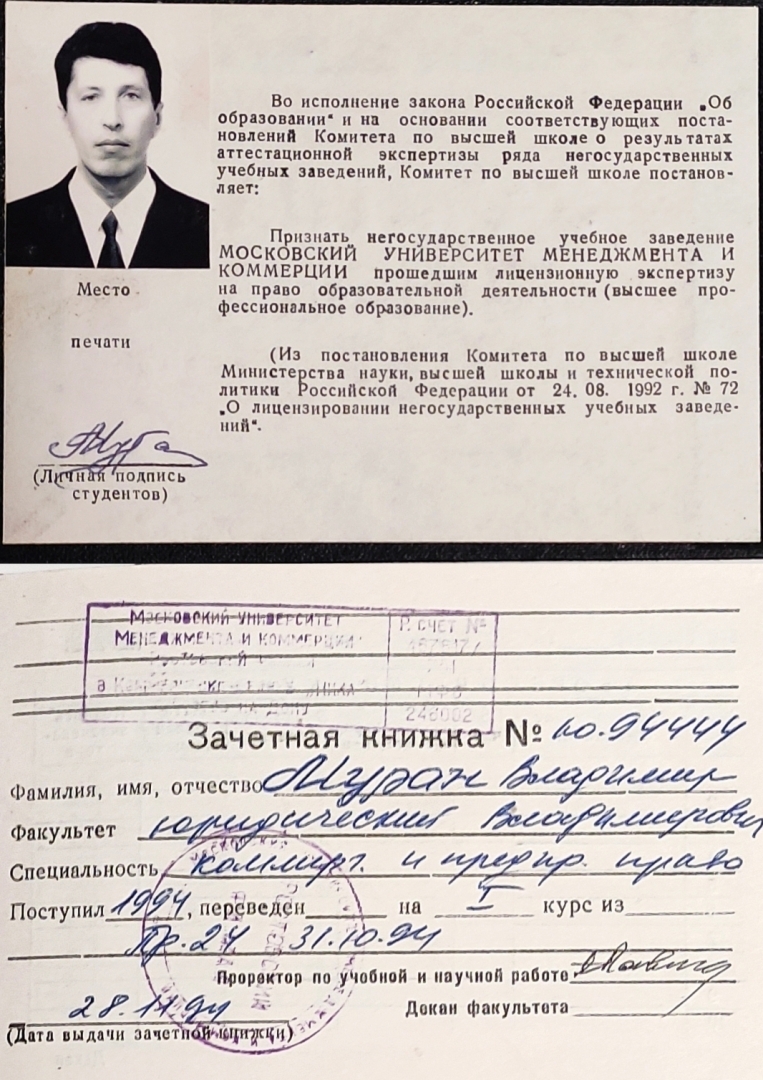 В 1994 году я поступил в московский юридический институт в Ростовском отделении на факультет права.