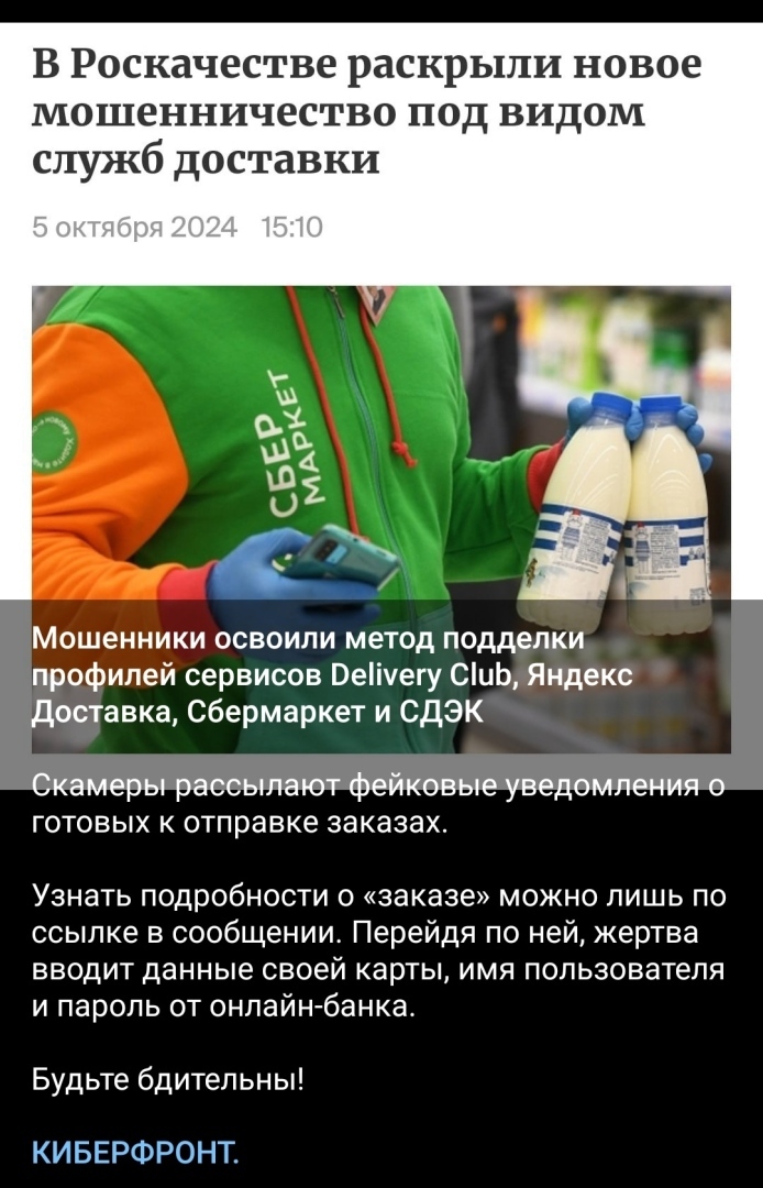 Мошенники: обман с использованием фейкового сервиса сайтов, осуществляющих доставку товаров (смотрите скриншот).