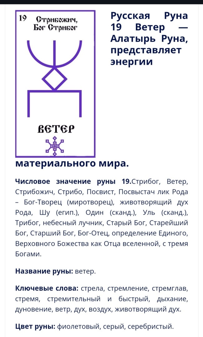 Один человек называет меня "Богиня Ветра" так по русским рунам я Ветер. Мне стало очень интересно узнать и почитать, что же представляет из себя эта руна. Скинув ссылку на сайт и пройдя по ней я начала читать.