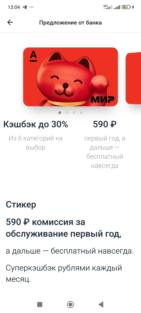 Единственный минус. Стикер стоит денег. Альфа банк предлагает оплатить всего 590 рублей за раз, но потом стикер будет абсолютно бесплатный до конца его жизни.