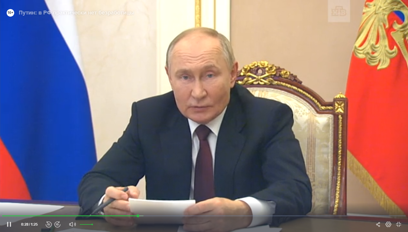 Президент России Владимир Путин провел конференцию по вопросам безработицы, в ходе которой сказал, что «безработицы в стране практически нет».