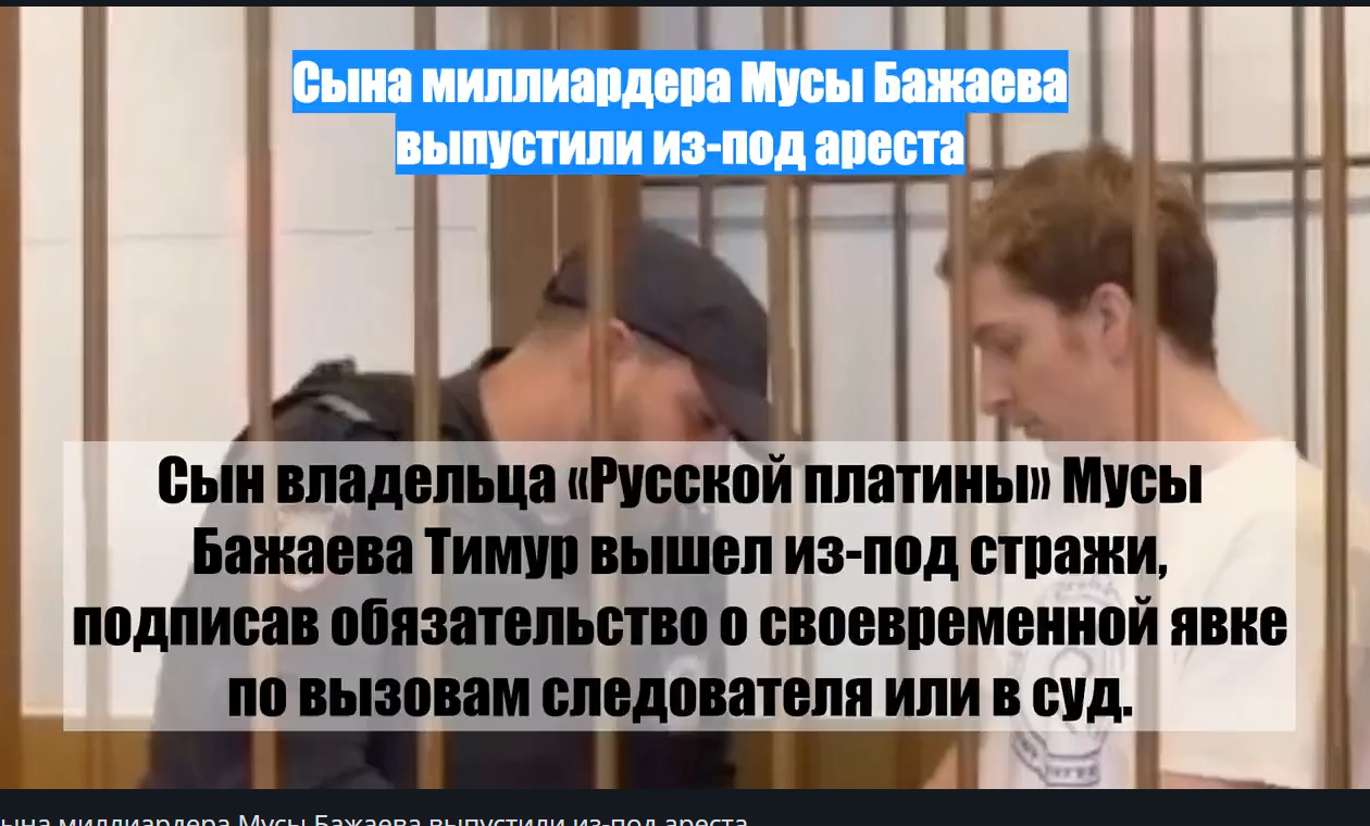 Сын миллиардера Мусы Бажаева, Тимур Бажаев, оказавшийся в центре громкого скандала, связанного с избиением сотрудника МВД, вышел на свободу