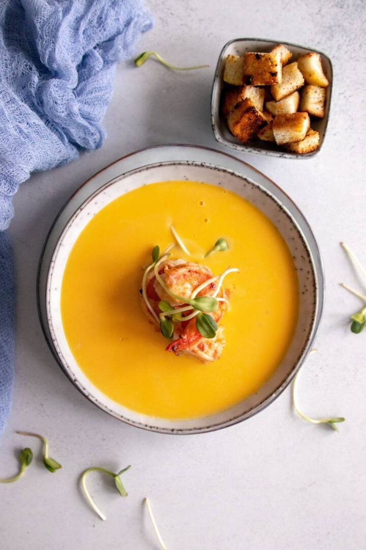 6. После суп блендерим до состояния пюре, добавляем сливки и при необходимости подсаливаем.