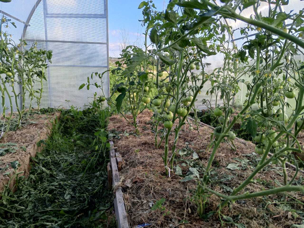 Дальше всё понеслось и закрутилось со скоростью света. Так как я это всё оформляла уже в начале июня, то, естественно, у многих уже в теплицах была высажена рассада, а мне предстояло ещё только купить. Но мы справились быстро. За 2 дня собрали теплицы(у нас получилось четыре теплицы 3*4), завезли землю и высадили свою рассаду, которая уже давно хотела поменять место дислокации.