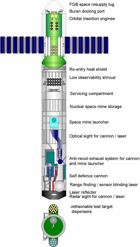 «Советские исследования систем лазерного оружия наземного и космического базирования начались в 1960-х годах. Советы фактически построили несколько наземных лазеров в 1980-х годах, которые, как сообщается, могли уничтожать спутники и самолеты или создавать помехи для них. Космическая лазерная система, представленная в этой работе 1987 года, была разработана для уничтожения или вывода из строя спутников и межконтинентальных баллистических ракет, но так и не был построена». (из сообщений иностранных СМИ)