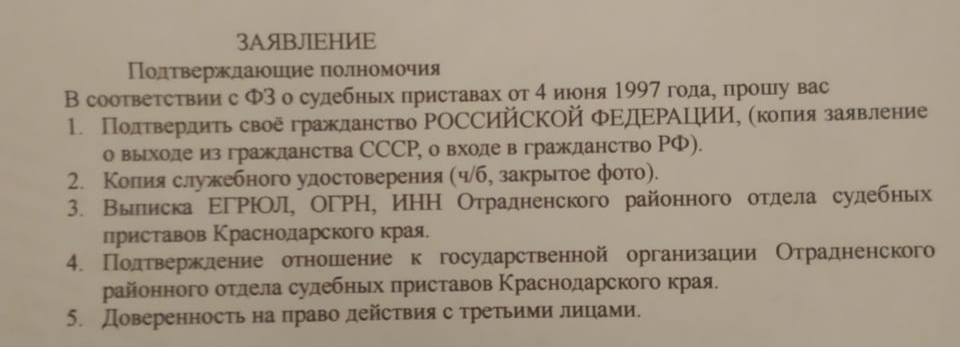 Добрый вечер, могу ли я запросить у судебных приставов документы подтверждающие их полномочия. Образец прикладываю. Спасибо