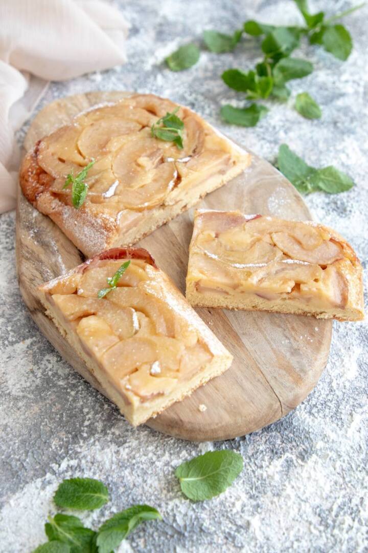 2. Пока она греется, яблочки нарезаем дольками по 1-1,5 сантиметра. Форму для выпечки застилаем пергаментом и его смазываем сливочным маслом.