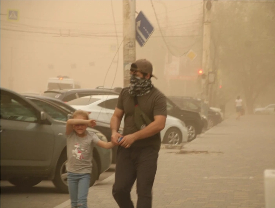Мало того, что земленная пыль закрыло солнце и выпала толстым слоем на растения и улицы городов, она ещё и вызывает болезни дыхательных путей и люди в очередной раз надели медицинские маски, спасаясь от этой гадости.