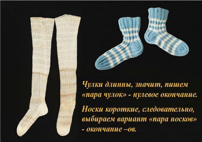 Надо запомнить легкое правило: предмет длинный, а слово короткое, и наоборот: предмет короткий, а слово длинное. Чулки по длине больше носков, поэтому пишем "чулок" (5 букв), а носки, которые короче чулок, пишем "носков"(6 букв). Т.о. правильно: носки – носков, чулки –чулок.