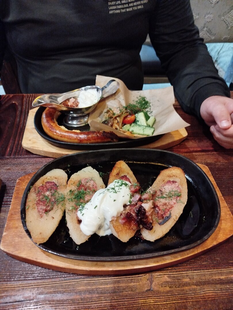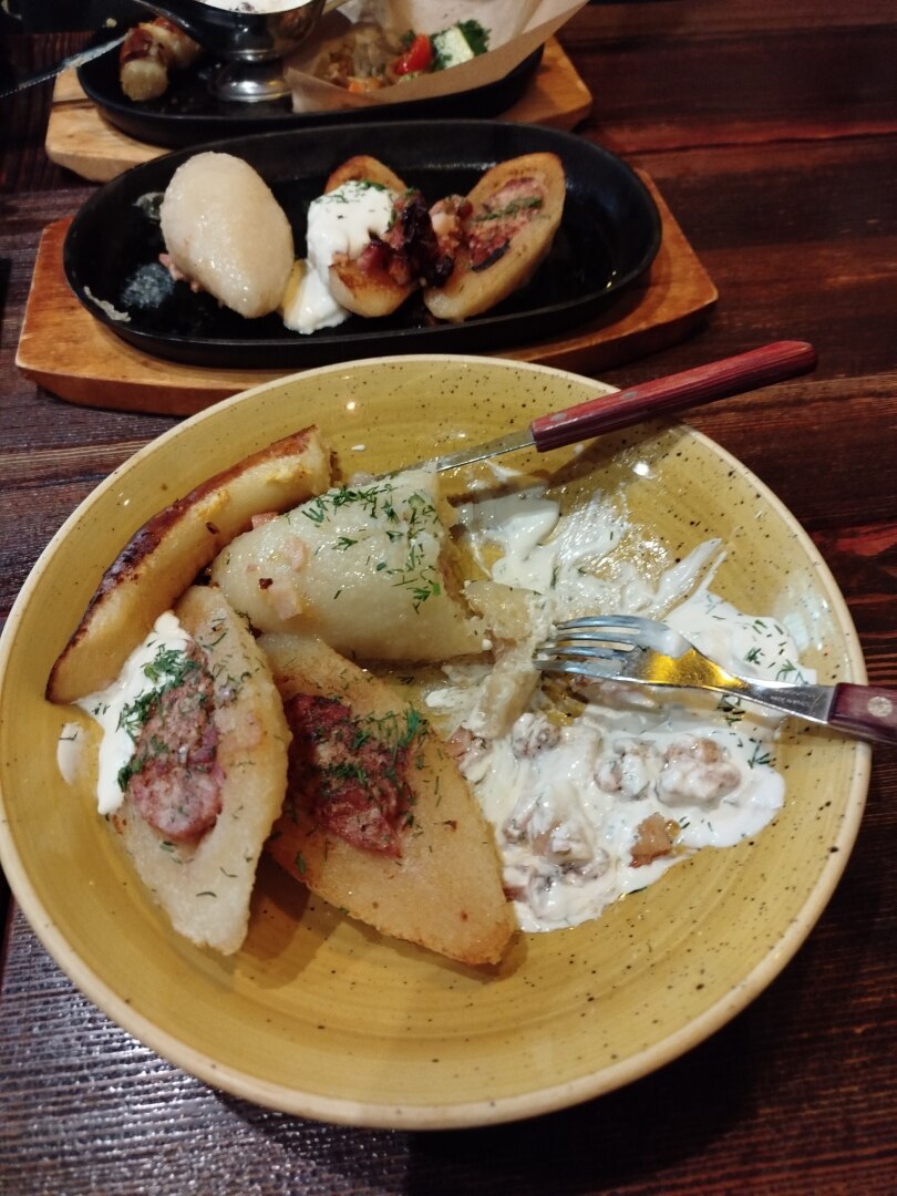 Я сразу определилась с заказом - традиционные ципилины с традиционным соусом. То есть, сметаной со шкварками, который подаётся к большинству литовским блюдам