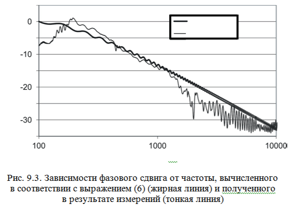 Зависимости величин Δϕ(t) от частоты, полученной в ходе эксперимента по схеме, представленной на рис. 9.1, и вычисленной с помощью (9.6), показанынарис. 9.3.