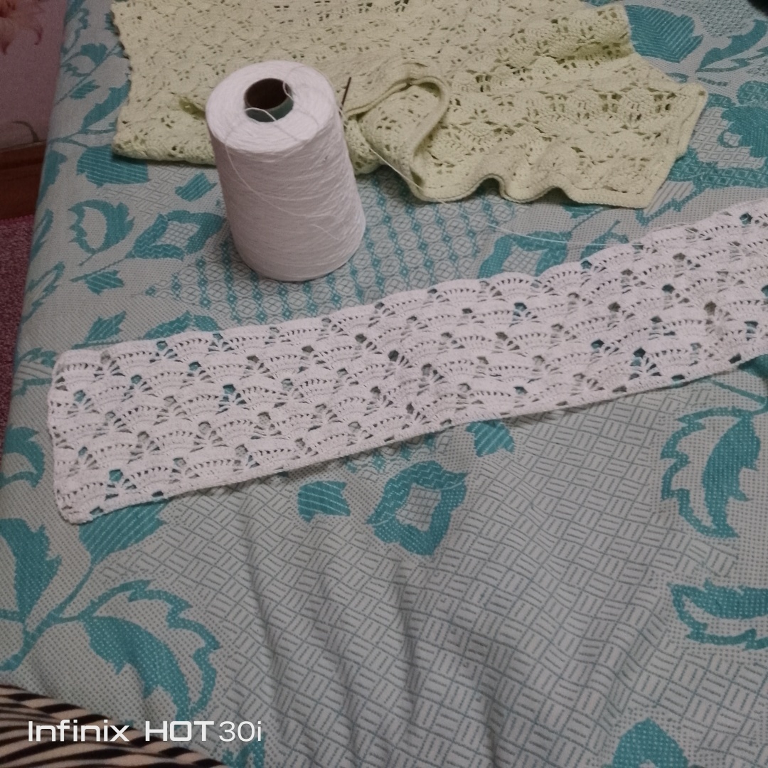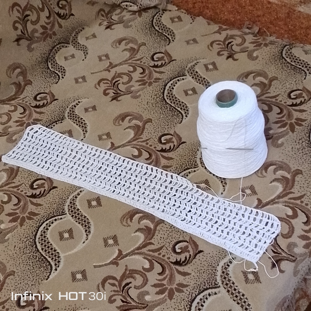 Связала много рядочков, потом передумала, распустила, вяжу сетку.