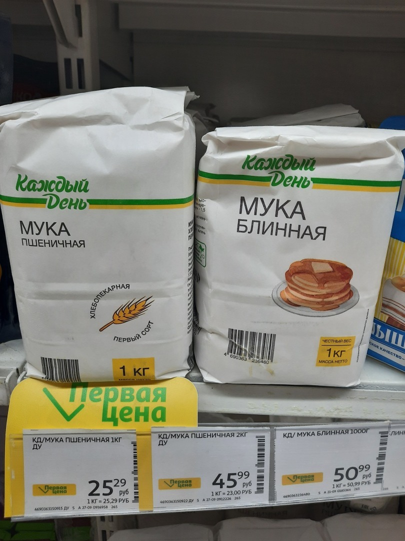 На фото тоже есть блинная мука, ее тоже берём, хотя блины нечасто печём.