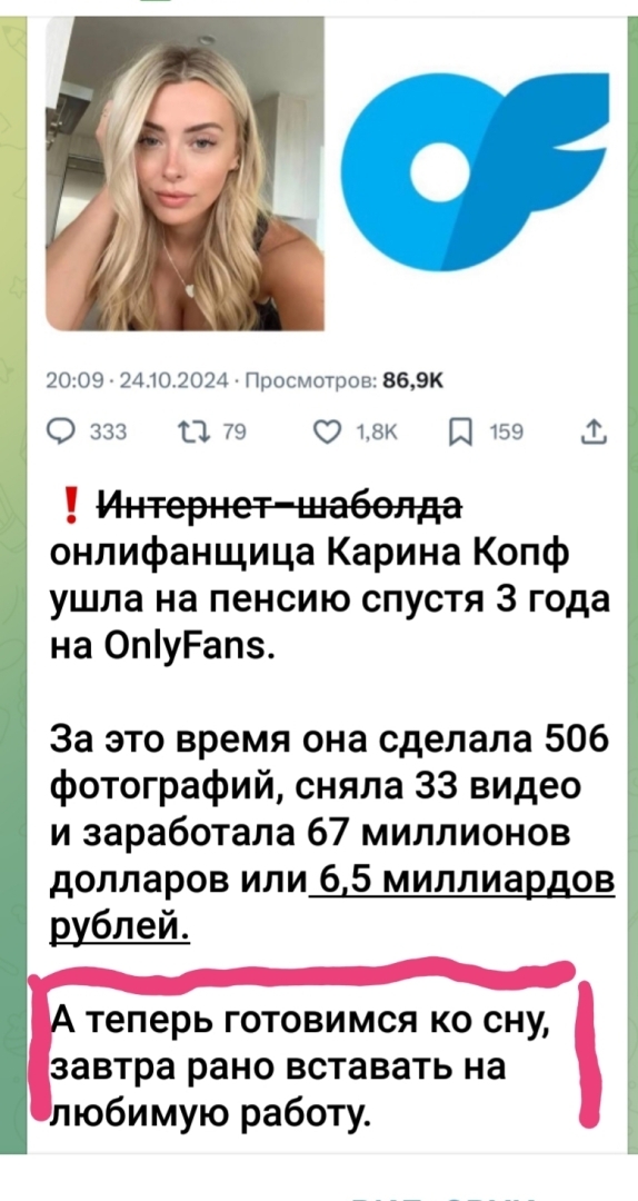 Да, онли Фанс он такой. Платят за общение ))) мне тоже бывает донатят 🤣 …ну не миллиарды конечно₽))))