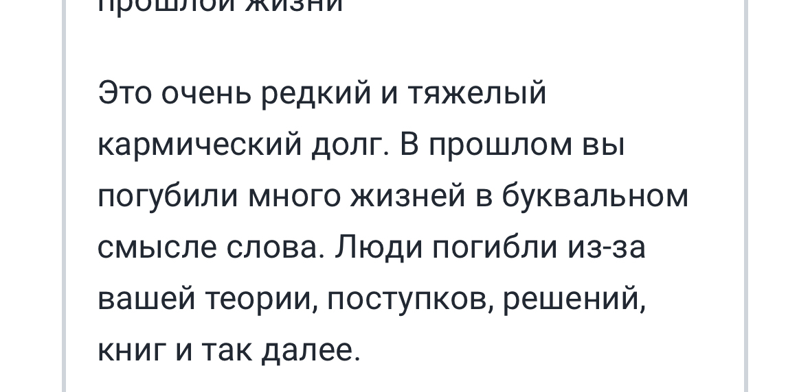 Забыла написать. Может, если верите в матрицу судьбы, то я в прошлой жизни я была убийца.