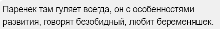Но почитав комментарии под постом об этом "маньяке", можно понять, что речь идёт о подростке, видимо, с особенностями развития. Те, кто его видел, пишут, что он не выглядит на 16-18 лет, по возрасту он моложе.