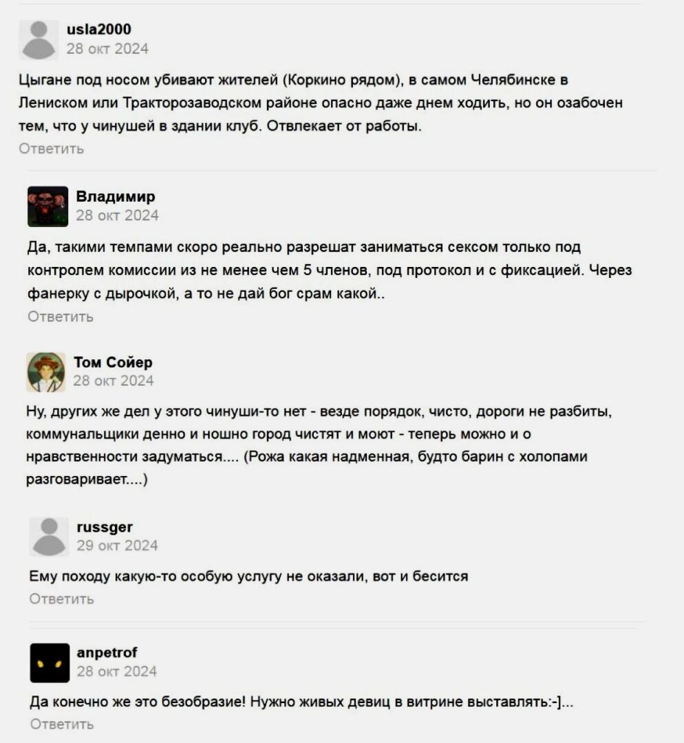 Похоже, если Алексей Лошкин устаканится в дожности мэра, то распутных челябинцев ждут высокоморальные и нравственные изменения, вплоть до закрашивания краской с другими карательными санкциями. Хотя, жизненный опыт показывает, что любые запреты приводят к совершенно обратным результатам. Но Лошкин знает что делает, вон он какой суровый и мудрый.