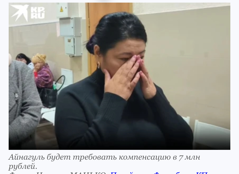 Теперь женщина собирается подать иск с целью получить возмещение за понесенные моральные страдания. Кстати, в качестве морального возмещения Барбуева и ее юристы намерены требовать ту же сумму в 7 миллионов. Полученные средства уборщица планирует использовать для приобретения жилья в Узбекистане.